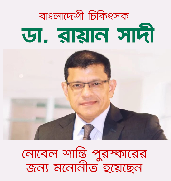 নোবেল শান্তি পুরস্কারের জন্য মনোনীত হয়েছেন বাংলাদেশী চিকিৎসক , ডা. রায়ান সাদী